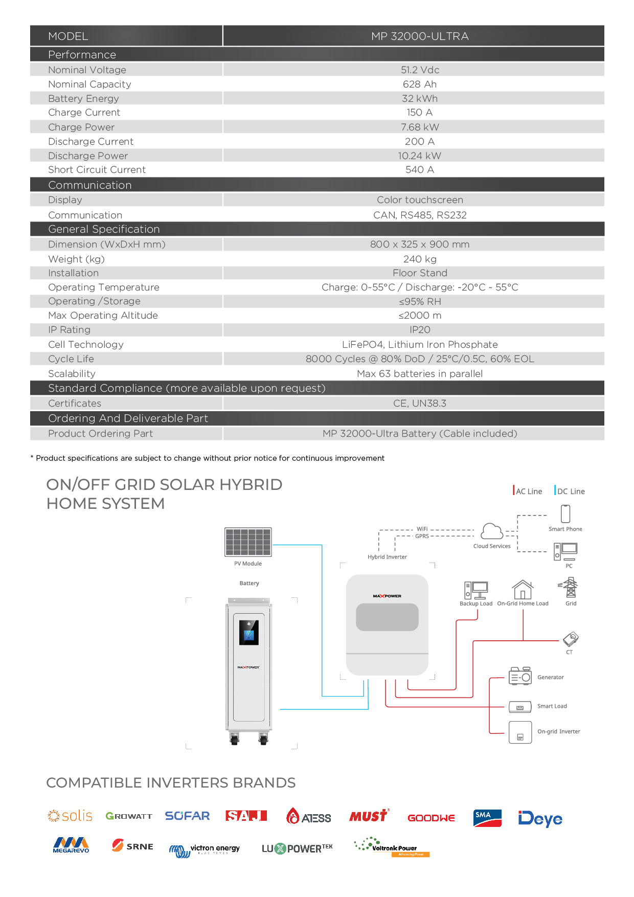 Nominal Capacity 51.2V, 628Ah, 32KWh